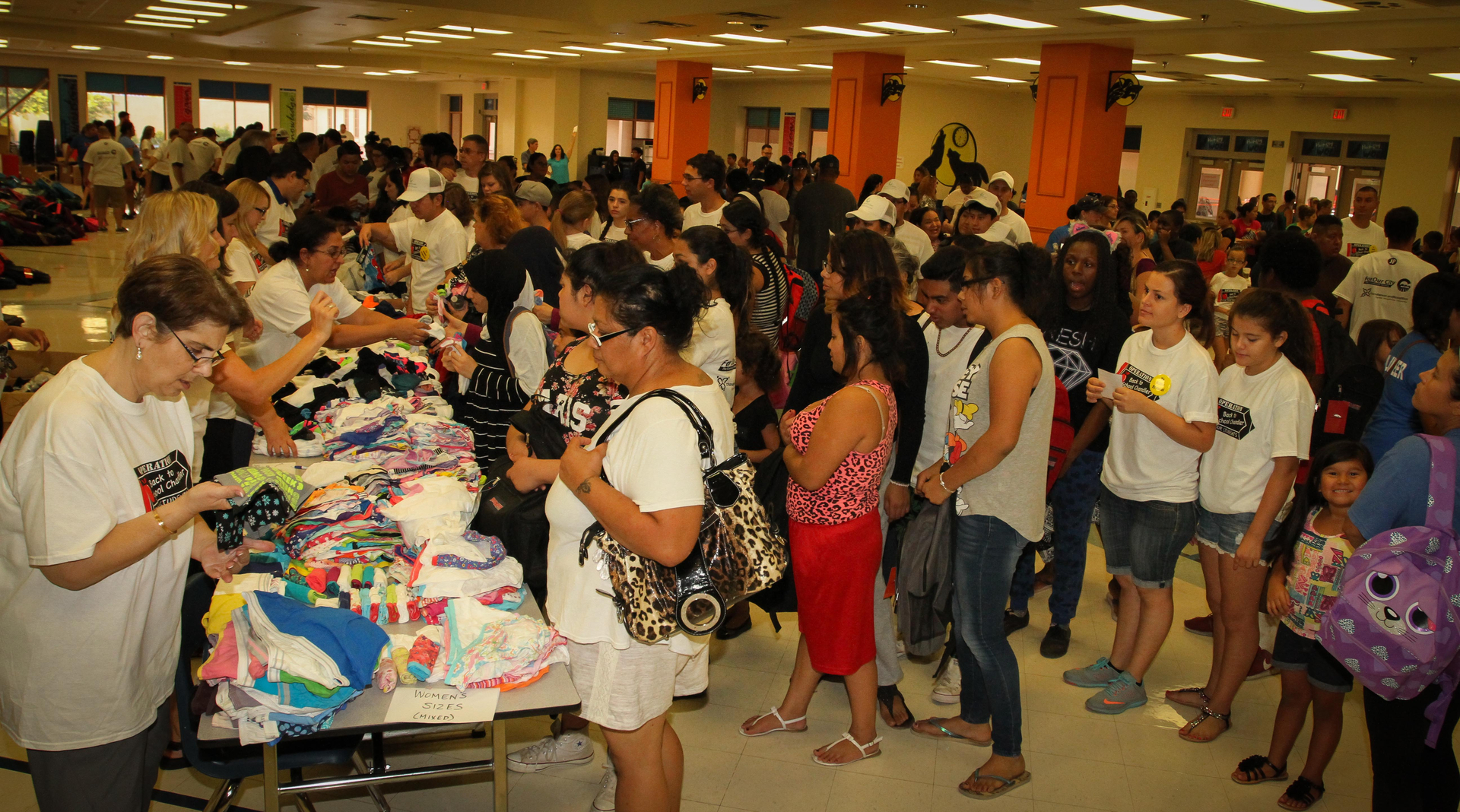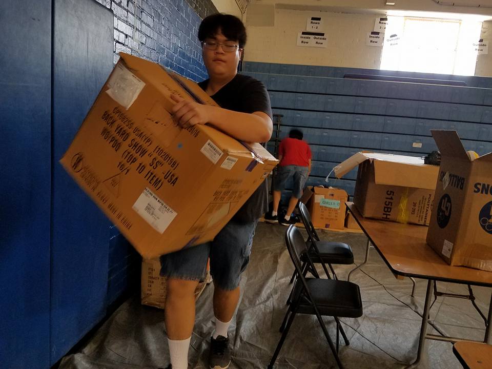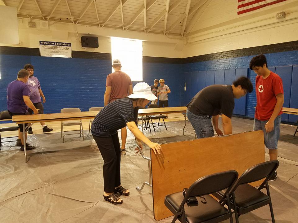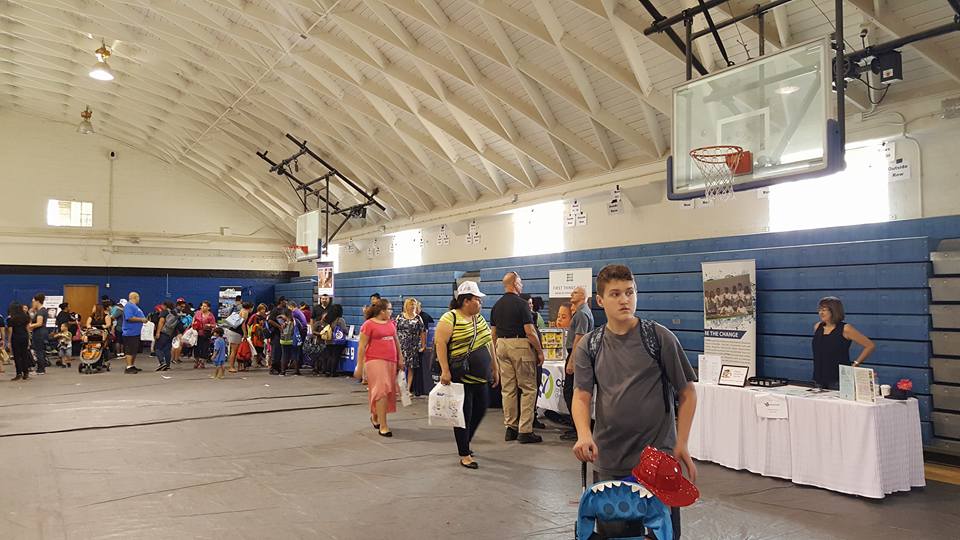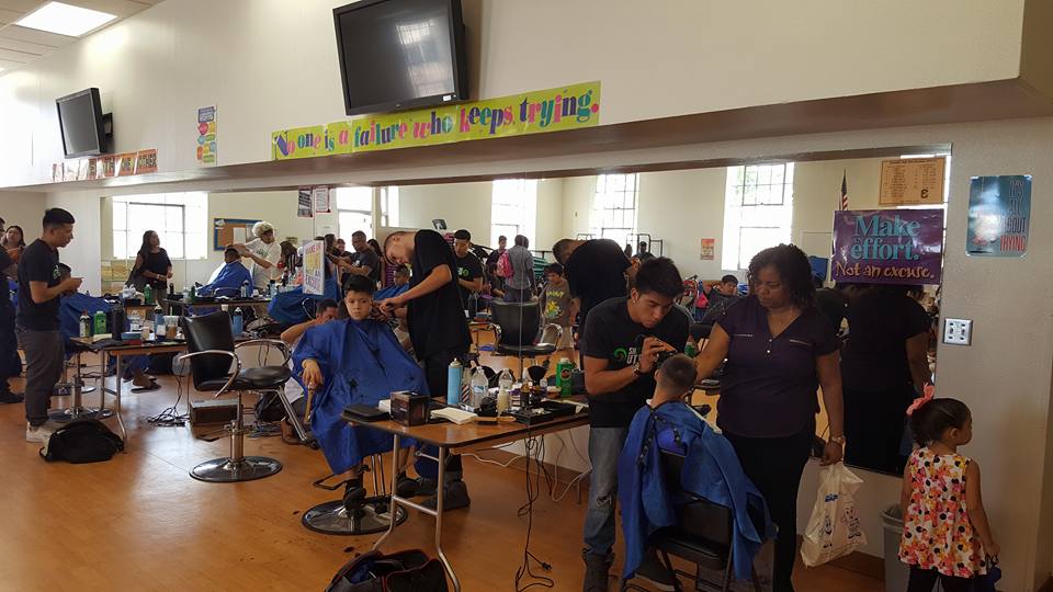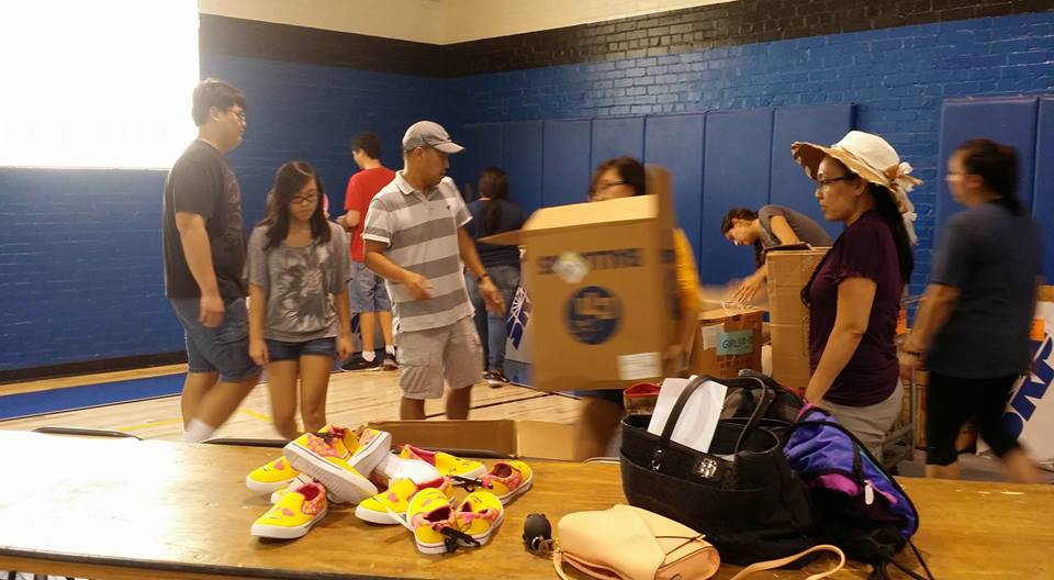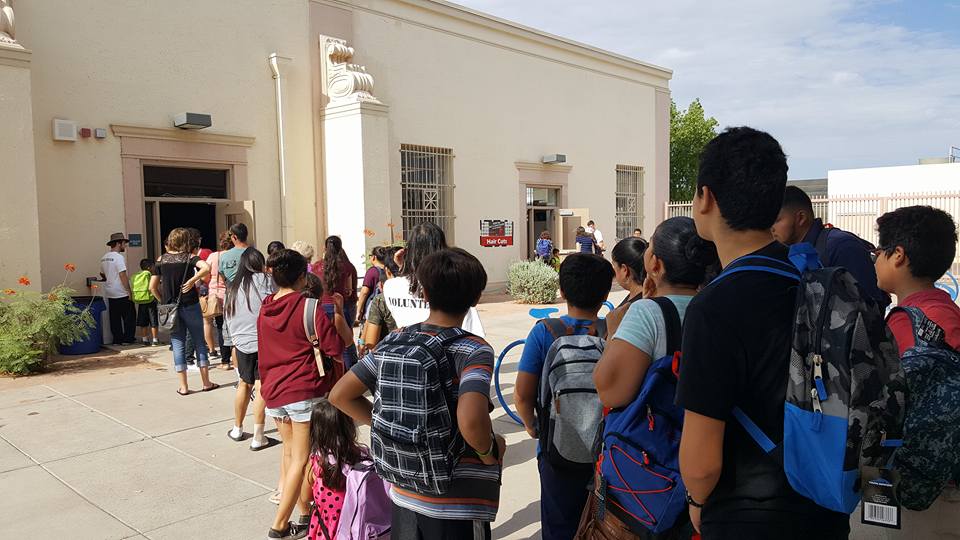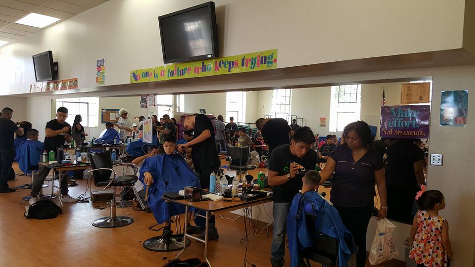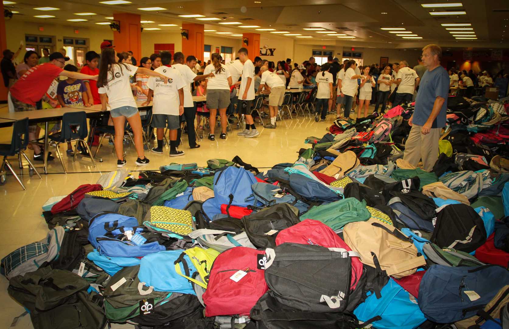 Sắp xếp bàn ghếCác thùng đựng giàyCác backpacksCác thiện nguyện viên cùng với Ông Kevin Hartke, Vice Mayor City of ChandlerNgày hôm đó cũng có chương trình cắt tóc cho các học sinh