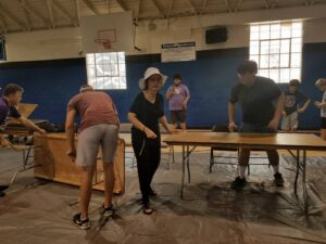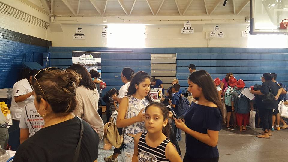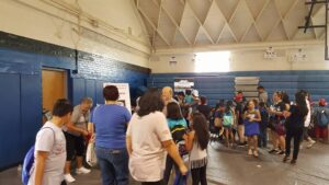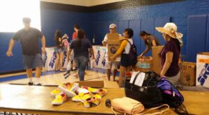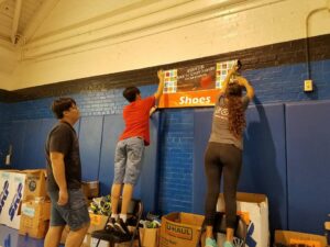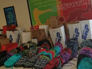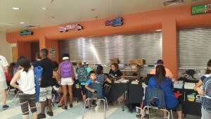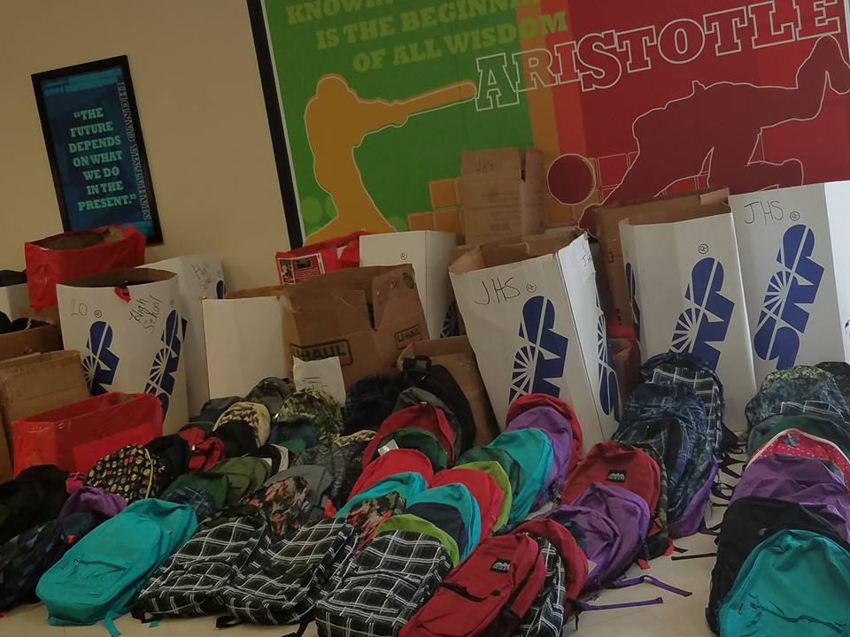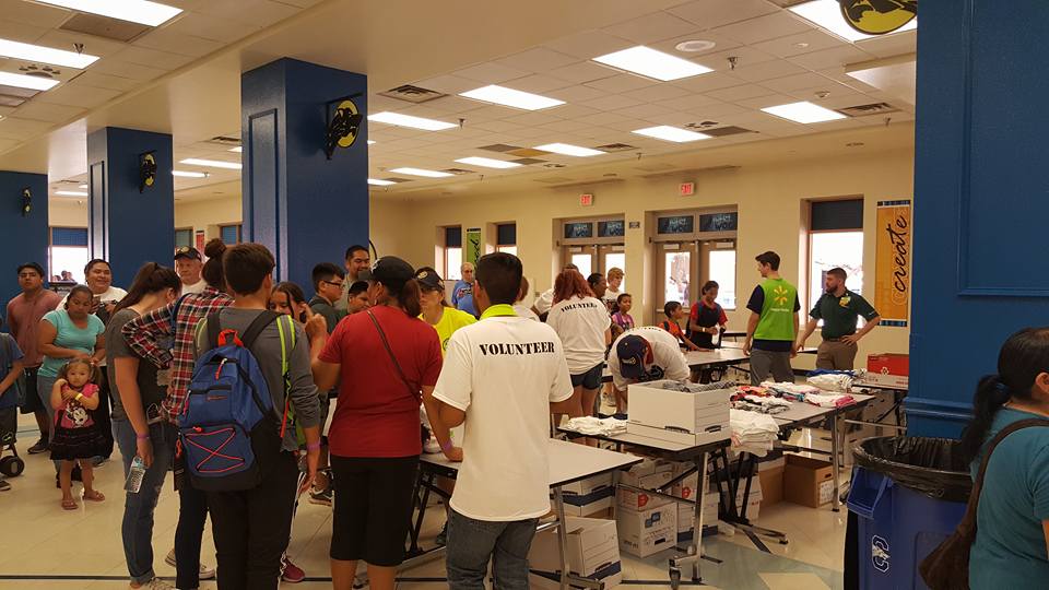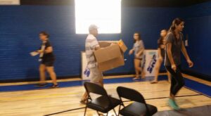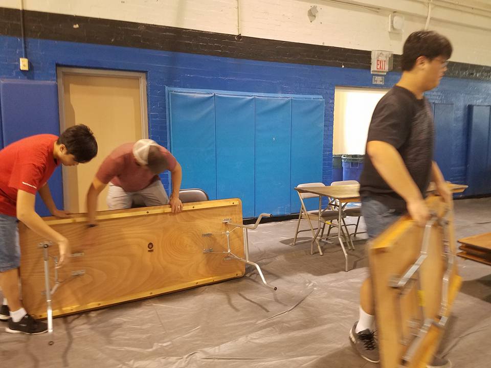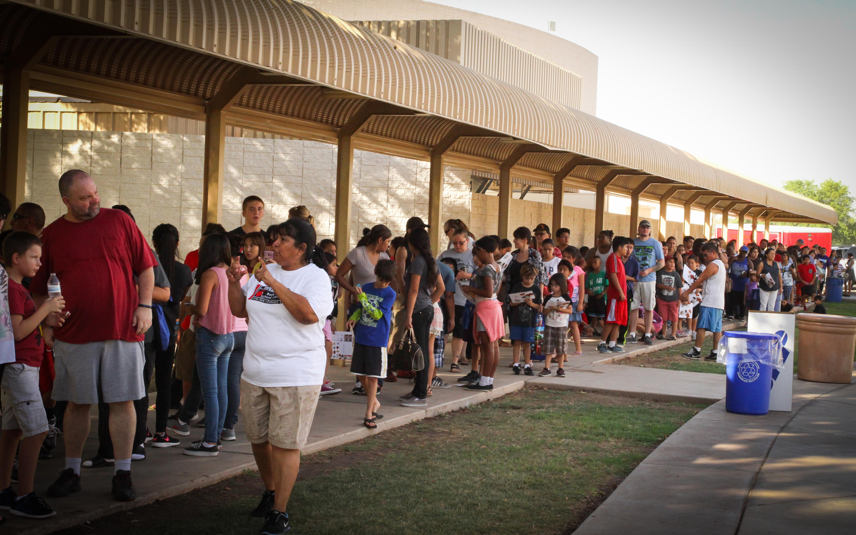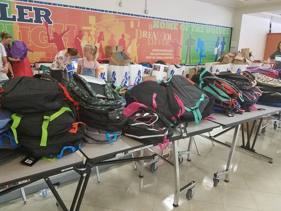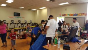 Sắp xếp bàn ghếCác thùng đựng giàyCác backpacksCác thiện nguyện viên cùng với Ông Kevin Hartke, Vice Mayor City of ChandlerNgày hôm đó cũng có chương trình cắt tóc cho các học sinh