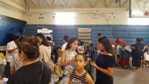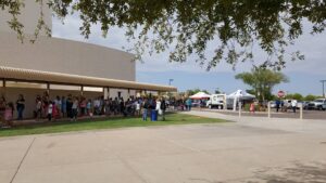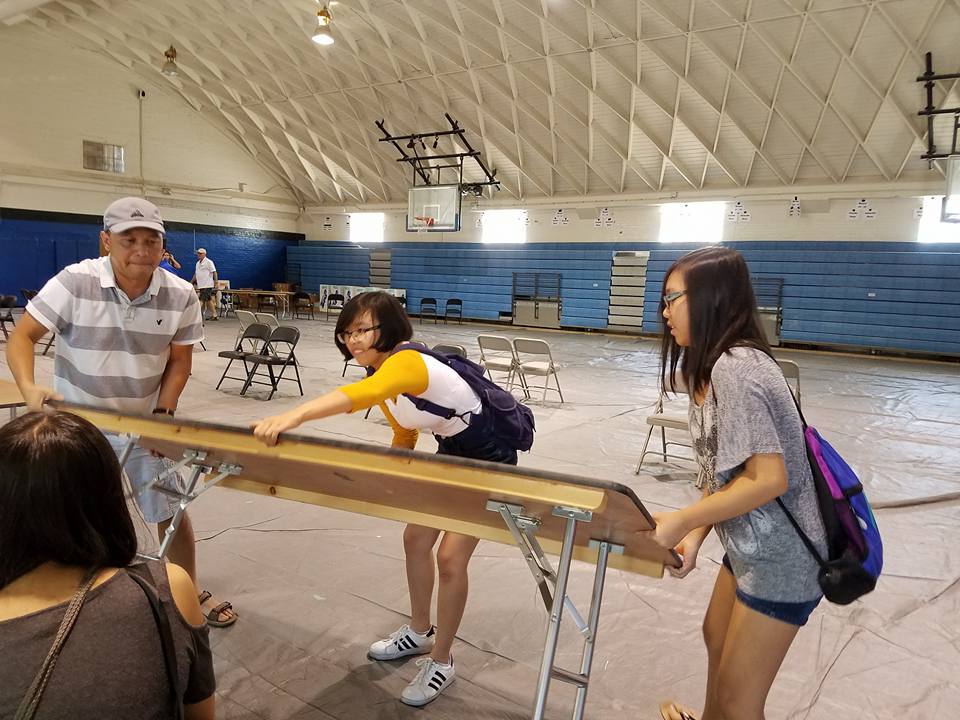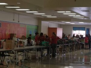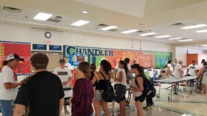 Tuy nhiên, từ ngày Thứ sáu trước chương trình, các thiện nguyện viên của CĐVNAZ đã đến sắp xếp các bàn ghế, backpack, quần áo, giày, sách vở, để chuẩn bị cho chương trình sáng sớm ngày mai. Sáng ngày Thứ bảy, các thiện nguyện viên đã có mặt tại Chandler High School từ lúc 5:00 giờ . Chúng tôi cùng nhau ăn sáng vào lúc 6:00 giờ, và các em học sinh được vào cửa vào lúc 7:00 giờ.